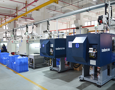 注塑车间配备行业内领先的海天、力劲、泰瑞等高端精密注塑机及全自动机械手,机台吨位涵盖80T-380T,可满足不同产品的生产需求。成型部门EVA冷热压成型机、Brother针车缝纫机、产品组装流水线等设备一应俱全。